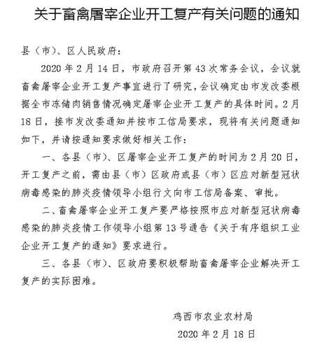 针对上述情况,农业农村部、国家发改委、交通运输部,已于2月15日发布紧急通知,要求合力抓好养猪业生产恢复发展,“点对点”协调解决好建筑用工问题,加大建筑材料供应和保障力度,确保各地新建和改扩建生猪养殖项目尽快开工复工、投产达产.........
