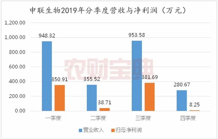 从申联生物2019年分季度报营收和净利润中可看出,第三季度是申联生物营收与利润最高的时候,第四季度是营收与净利润最低的时期。