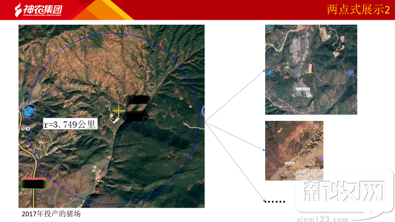 神农集团2014年投建的猪场距离最近的村庄1.33公里,由于云南山地较多,天然屏障提升了生物安全的水平。母猪场配套的育肥场也都与村庄保持了安全的距离。据陈俭介绍,神农集团非常重视猪场选址,参考PIC千点评分原则,对猪场周边的环境有严格的考察。