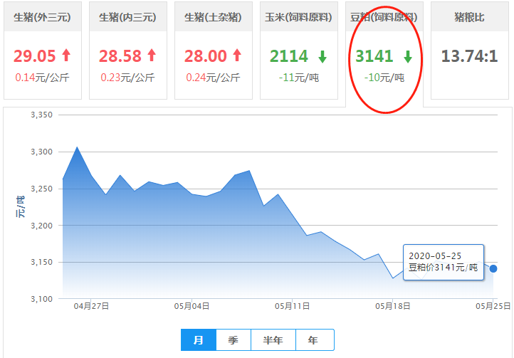 全国豆粕均价(2020/5/25)