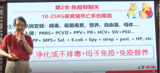 安佑的方案就是对疾病净化或不排毒、母子免疫及添加免疫营养来提升猪的免疫力。