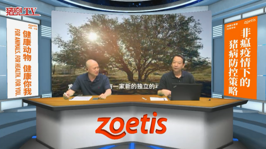 杨汉春老师(右)和硕腾(中国)猪事业部技术负责人王科文博士(左)搭档出镜