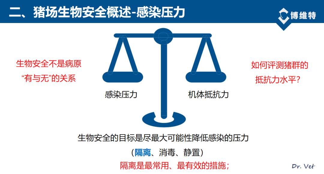 曲向阳强调:必须要明白,生物安全不是病原“有与无”的关系,而是感染压力与机体抵抗力之间的较量,生物安全的目标是尽最大可能性降低感染的压力,而隔离是最常用、最有效的措施!