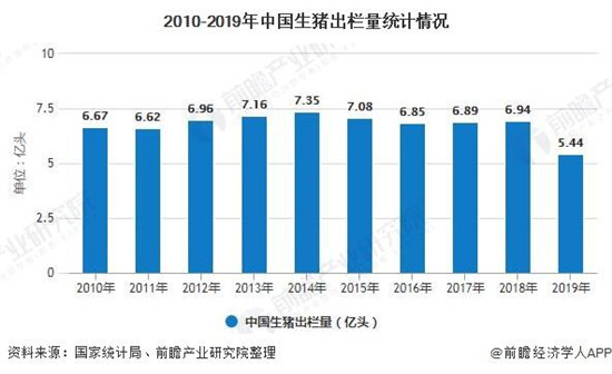 改革开放以来,受经济持续高速增长、城乡居民收入水平不断提高和食物消费结构不断升级等导致的需求强力拉动,我国生猪产业一直保持着快速增长的趋势。但近年来,行业环保政策要求日趋严格,大量中小散户推出行业,加“非洲猪瘟”的影响,2019年我国生猪出栏量大幅下降到5.44亿头,较2018年同比下降21.57%。