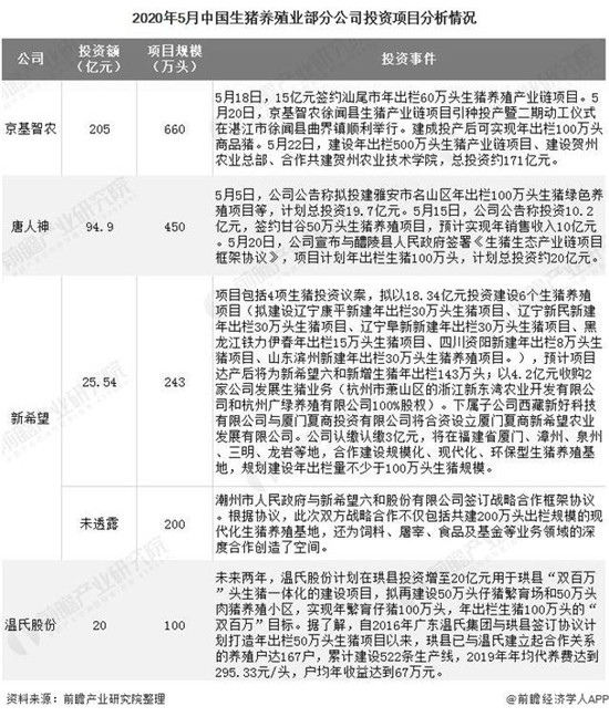 但价格下降并未影响企业的投资热情。2020年3月,农业农村部、发改委、财政部等多个部门发布了一系列政策支持生猪养殖产业,各大公司纷纷布局养殖项目。