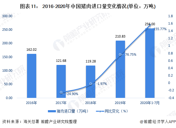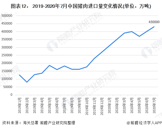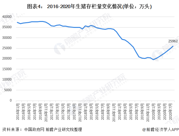 在我国相关政策的扶持下,2020年,我国生猪存栏量开始逐渐回升,至2020年7月已回升至25962万头,已经接近2019年年初的水平。
