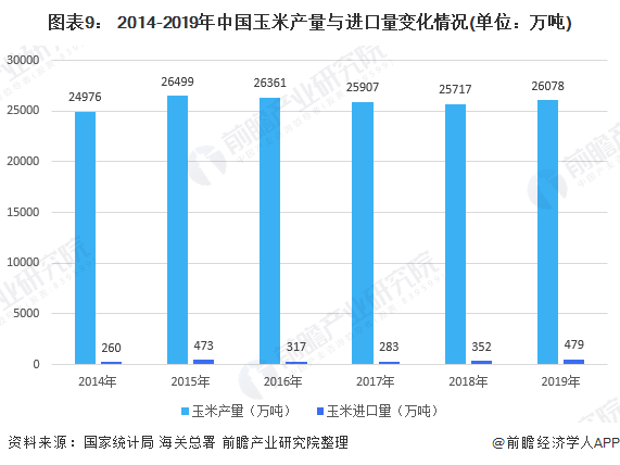 除去大豆和鱼粉,我国也有对于进口依赖程度较低的饲料原料,如玉米——我国玉米资源极为丰富、廉价且易于获得, 2019年,我国玉米产量为26078万吨,远远高于进口的479万吨。