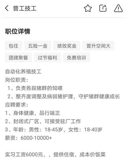 但与此同时,养猪场相对“恶劣”的卫生条件、连轴转的工作周期、封闭化管理制度等,使得行业出现了“抢人容易、留人难”的状况。