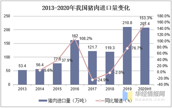 2020年上半年我国进口猪肉数量达到207.4万吨,同比增长153.3%,据测算进口猪肉约占国内猪肉消费的5%-8%左右。进口猪肉由于主要以冻猪肉为主,因此进口猪肉主要流入猪肉深加工企业,鲜猪肉依然是市场消费主流,因此进口猪肉对于猪肉价格调控的影响不大。