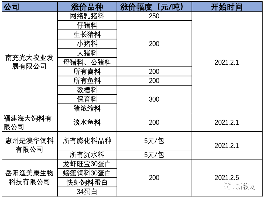 受到饲料原料玉米、豆粕价格高企,尤其是玉米价格抗压能力较强,短期难有大起大落走势,受于成本压力饲料企业调价决心并没有转变。2月初南充光大等企业上涨饲料价格200-300元/吨。而海南省饲料兽药行业协会也在1月30日发布关于调整饲料产品价格的通知,猪鸡鸭鱼料等全部饲料上涨50~80元/吨。
