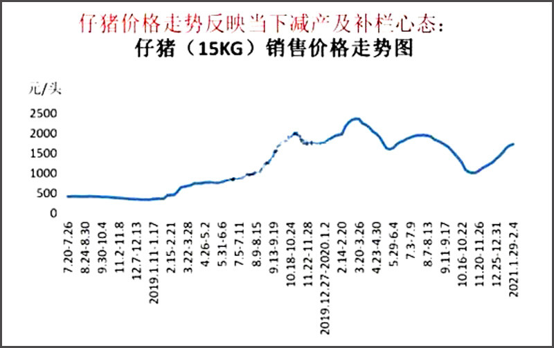 当然,除了机构监测2021年1月份母猪存栏环比下降4.99%以后,另一变局也显示了市场对于猪价后市的底气!据机构监测显示,市场15公斤仔猪销售价格呈现持续上涨的态势,价格从2020年10月头均1000元,上涨至2021年2月初头均1700元!