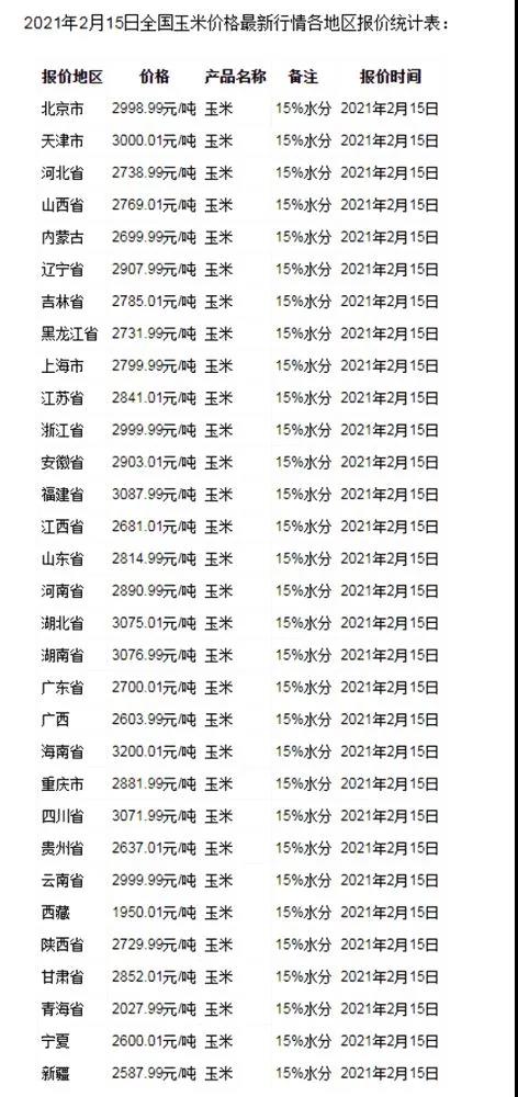 早在大年初二时,河北就有企业复工收购玉米,从而带动了玉米行情的反弹。从目前的价格来看,2月15日,黑龙江均价为2539.38元/吨,相比14日则是大涨29.31元。而齐齐哈尔的玉米涨至2900元/吨,哈尔滨涨至2707.99元/吨。