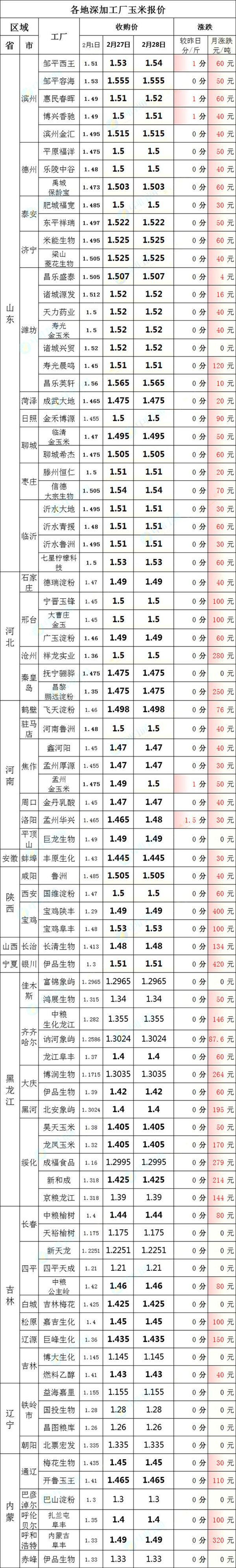 而在宁夏伊品生物,玉米深加工报价1.51元/斤,相比月初,上涨420元/吨!陕西宝鸡陕丰玉米报价2月份上涨达到了400元/吨!