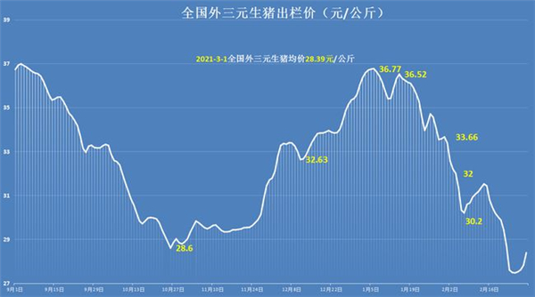 猪价系统显示,截止到3月1日,全国