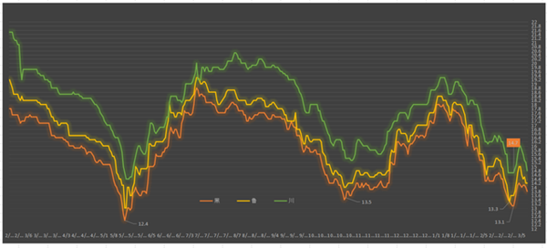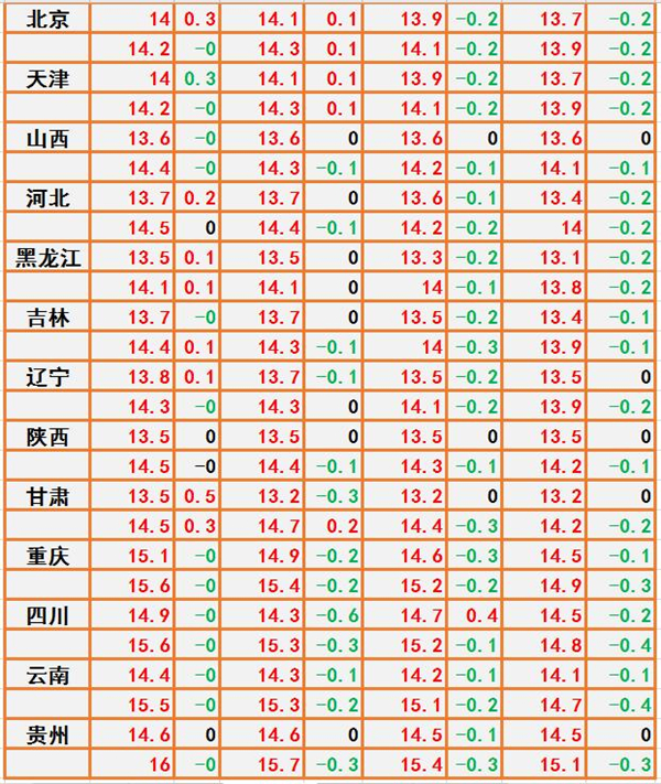 南北三省特级猪价格越来越接近,黑龙江省有下跌势头猛,应该徘徊在13.8元左右;山东省趋于稳定;四川省没法确定何时探底。