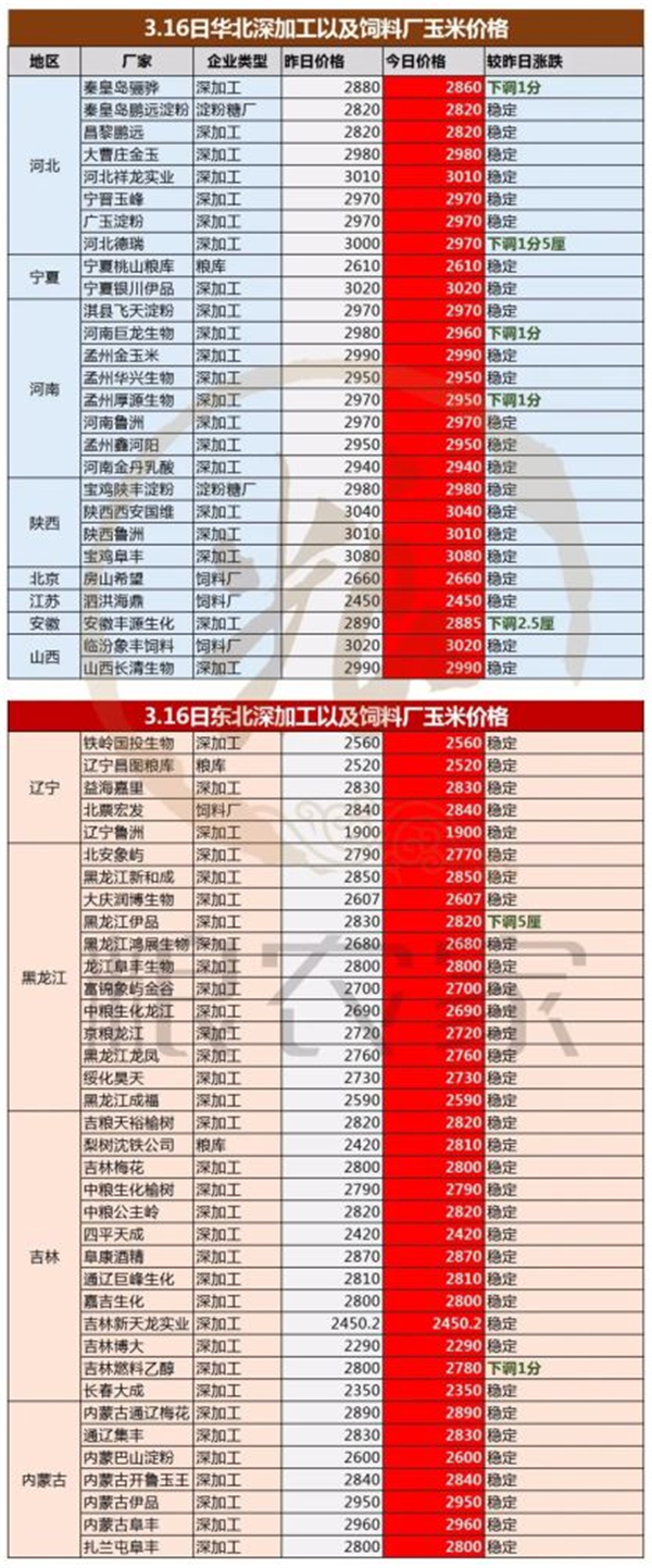 东北地区今日深加工企业玉米收购价格较昨日继续下跌,一方面恐慌性售粮情绪严重,集中售粮造成价格踩踏;另一方面随着产区气温继续回升,玉米储存难度加大,继续上量,