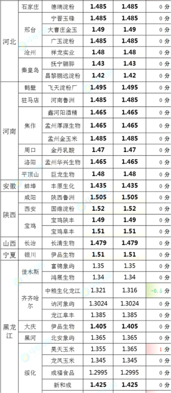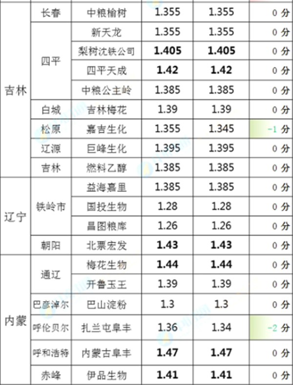 在产区东北,随着基层售粮逐步进入尾声,市场抢粮现现增强,黑龙江昊天玉米以及京粮龙江玉米报价上涨,涨幅1分/斤,其中昊天玉米报价1.365元/斤,京粮龙江玉米报价1.345元/斤。而在齐齐哈尔中粮生化龙江玉米报价下调0.5分,执行价1.316元/斤。松原嘉吉生化玉米报价回落1分,价格1.345元。行情呈现弱势回落的态势。
