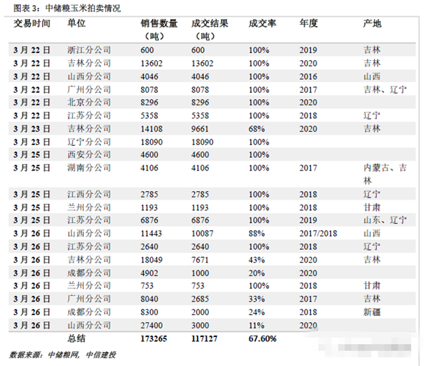 截至3月19日新季玉米销售进度已完成86.36%,单周销售速度放缓,预计5月销售结束;海关总署3月19日公布国内1-2月进口数据,其中玉米累计进口480万吨,同比增加416.13%,其他谷物小麦、大麦和高粱同比分别增加266.18%、78.38%和370%,今年饲用玉米有望被大量替代。