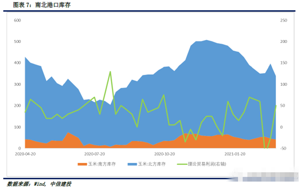 农业农村部公布1-2月生猪存栏,环比增加1.1%和1.0%,卓创咨询公布2月能繁母猪存栏,环比增加2.04%,数据出现分歧,生猪价格开始走弱;目前养殖利润仍然可观,补栏热情仍在,中长期饲用玉米需求可期;白羽鸡鸡苗价格价格维持高位,中小养殖户利润空间不断缩小,部分选择退出,禽类饲料需求可能走弱。