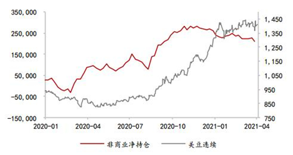 图2美豆走势及CFTC基金持仓
