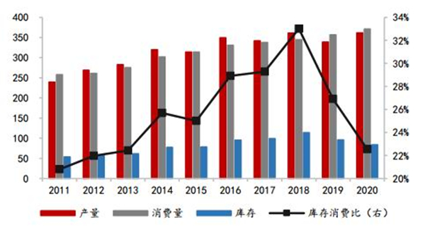 图3全球大豆供需平衡(百万吨)