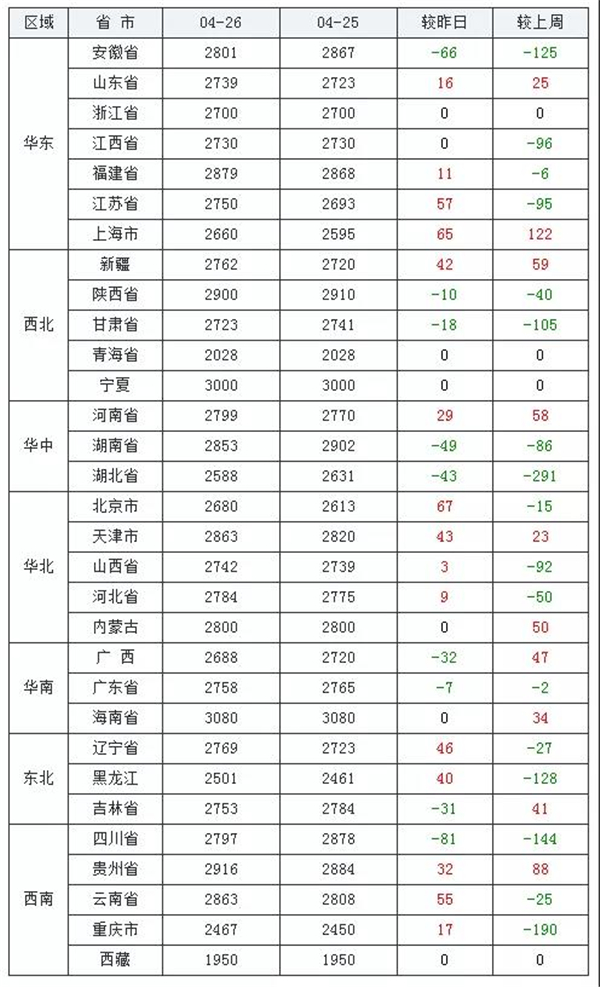 华中地区:湖南省2853元/吨;