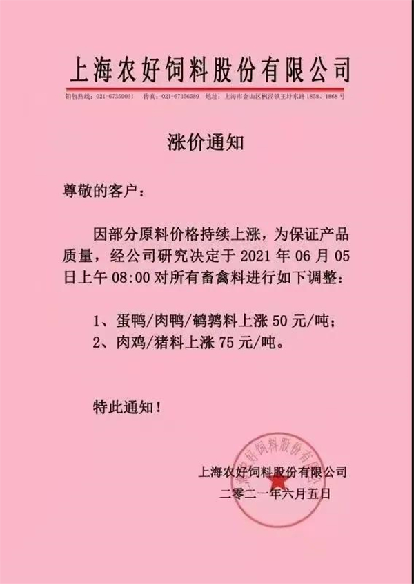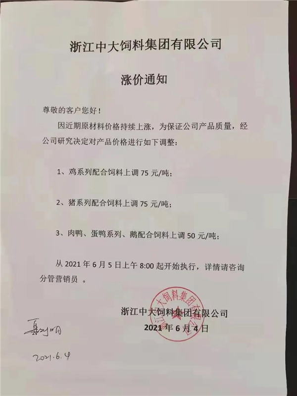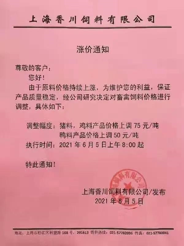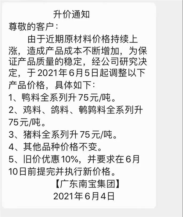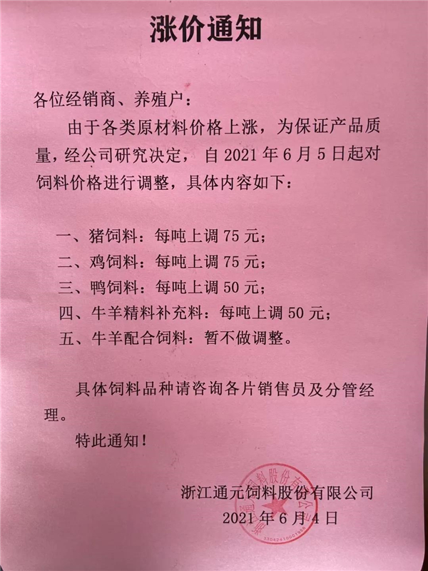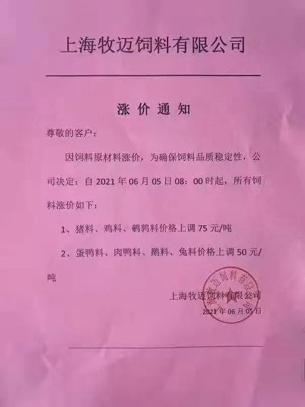 豆粕、玉米等饲料原料价格持续高企,或有更多的饲料企业陆续宣布饲料涨价。
