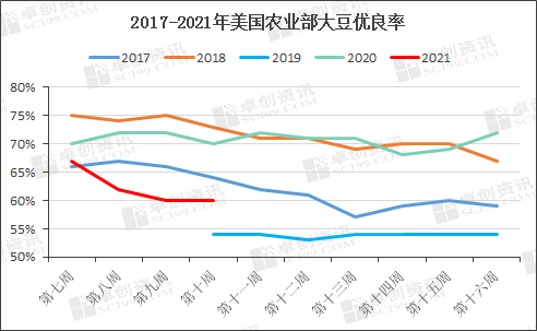 从具体节奏看,1月份市场延续着2020年下半年的上涨行情,主要原因在于巴西大豆发货迟缓。而2月开始,国内二次猪瘟发生,需求端逐步恶化,饲料蛋白需求预期不断下调,价格只能不断下行;4月开始,豆粕定价开始关注新年度美豆预估。中西部持续至今的高温干旱行情,天气升水不断注入期货市场,带动豆粕价格反弹,而进入5月后,随着传统进口高峰到临,中国猪价却不断下行,而美豆市场的生长数据并无大碍,播种正常推进,豆粕价格在缺乏天气支撑后开始回落。从月度行情看,2月、3月、6月价格下跌,1月、4月、5月价格上涨,涨跌较为频繁。