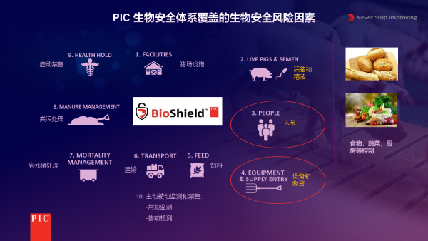 要持续强调对“人”的关注,人是生物安全措施的X因素,而不是苍蝇,蚊子和飞鸟。PIC健康保障的目标是“提供标准化的流程,资源和培训,激励一种个人责任感,维护PIC高健康的猪群,保护我们客户的猪群健康和盈利能力。在PIC培育形成一种生物安全的文化。”归根到底重点落在人上,落在一个生物安全文化上。流程和培训只是工具和手段,影响人的行为才是结果。人采取了正确的行为和行动,那健康才有保障。