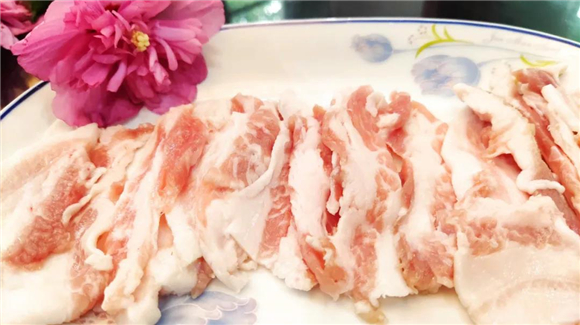 雪花猪肉非常像大家熟悉的雪花牛肉,脂肪沉积到肌肉纤维之间形成的雪花非常明显。
