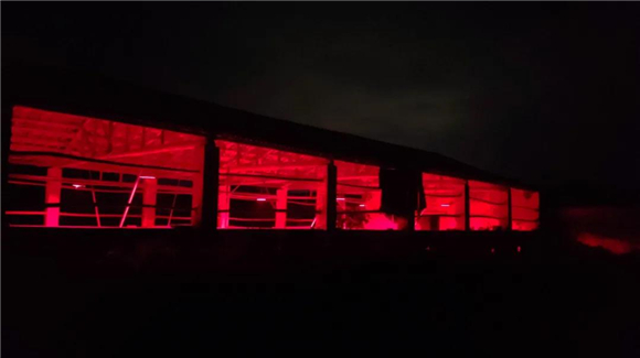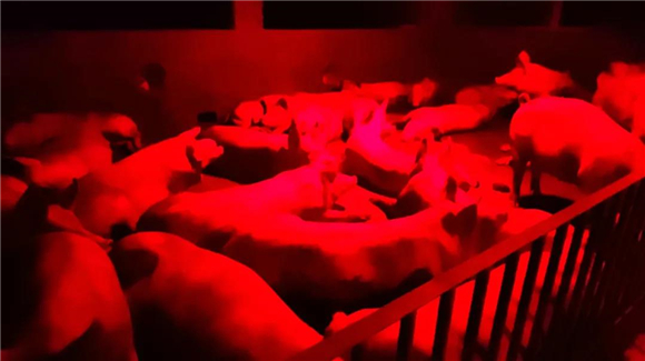 值得一提的是,白天在阳光下悠闲散步的猪,晚上也在接受“阳光普照”。
