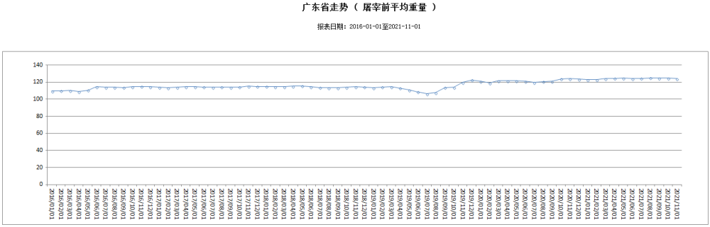 11月份,跟踪监测的321家生猪定点屠宰企业生猪屠宰前平均重量124.29公斤,环比下降0.50%。