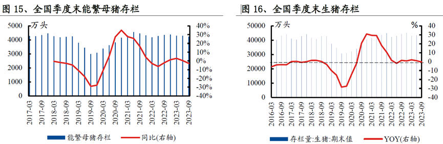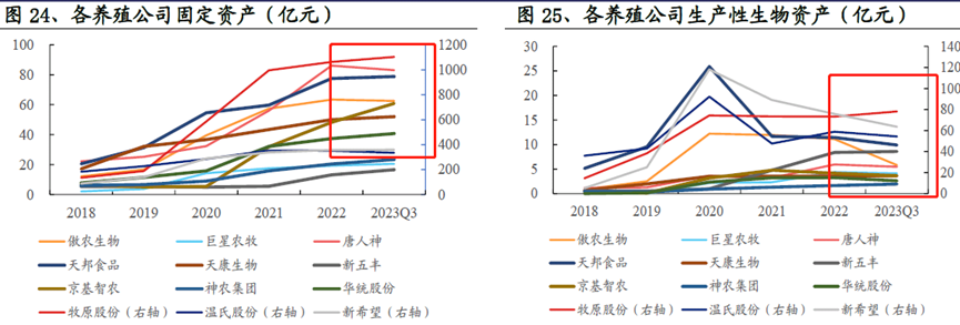 同时,值得注意是上市公司方面,大部分养猪企业2023Q3末生产性生物资产增长放缓。