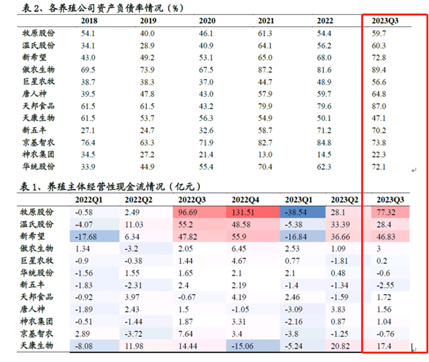 行业数据显示,养殖主体经营性现金流承压,资产负债率提升,上市公司现金流都紧张的背景下,未来如行业继续亏损,母猪产能有望进一步去化。