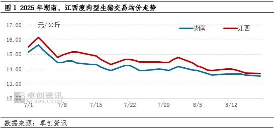 8月湖南、江西生猪价格下行中旬跌幅收窄