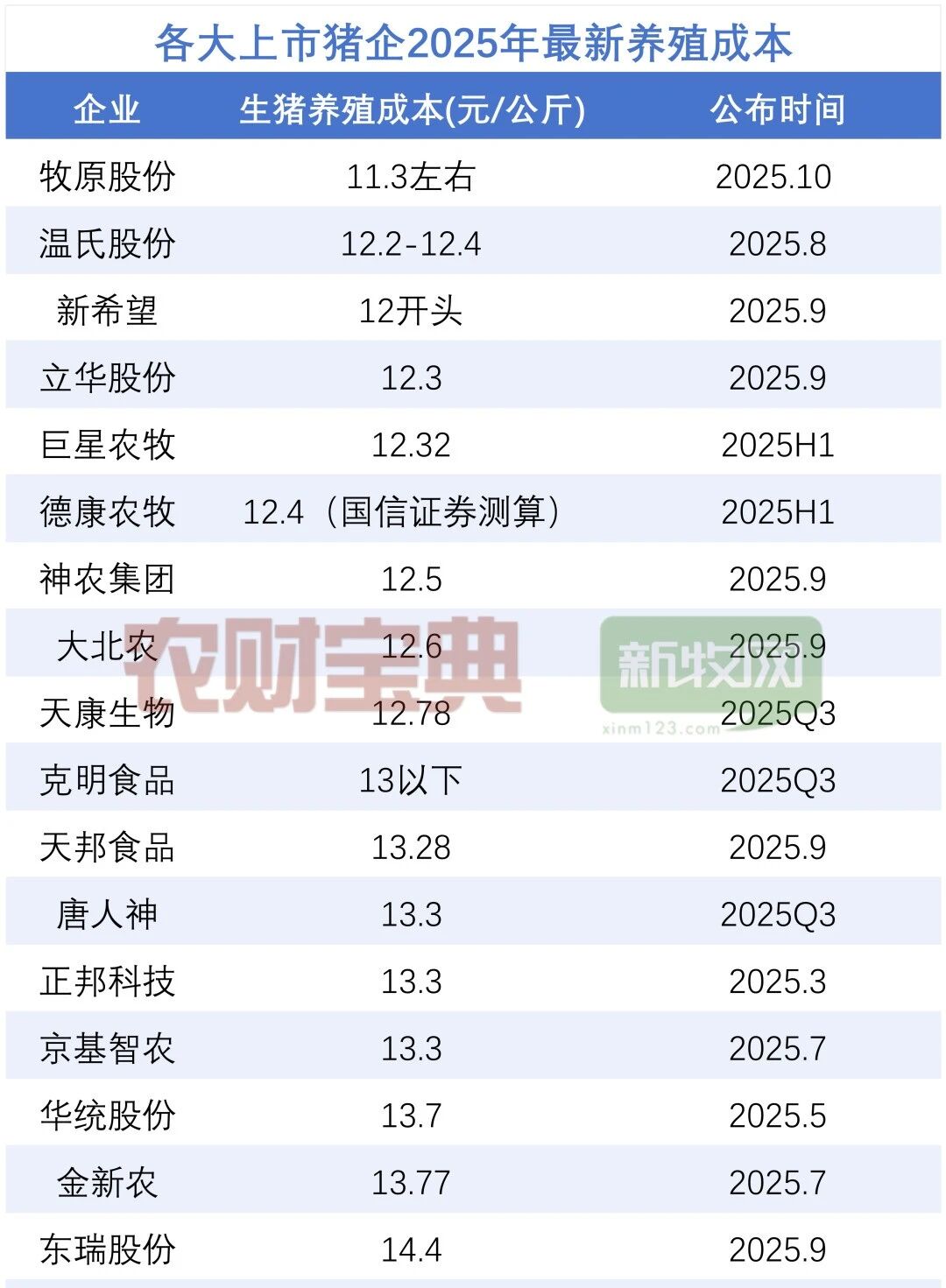 猪价跌跌不休,各大上市猪企纷纷致力于降本增效,且成绩显著。农财宝典新牧网记者统计数据显示,牧原股份刷新纪录,低至5.65元/斤。温氏股份、新希望、立华股份、巨星农牧、神农集团、大北农等均保持在6元区间。