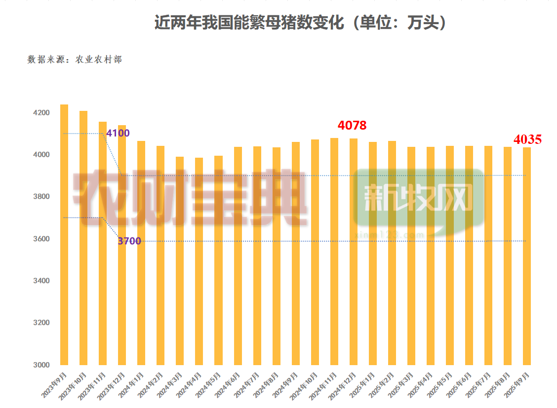 今年5月份以来,国家有关部门已多次召集会议,制定了一系列具体政策方案:调减能繁母猪产能100万头、严禁二次育肥、控制出栏体重等,并强调头部企业应带头控制产能,包括调减能繁母猪、降低出栏量、出栏体重控制在120公斤左右等。数据显示,截至2025年三季度末,全国能繁母猪存栏量为4035万头,相较去年12月底,已减少43万头。