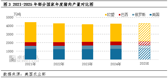 2.2025年欧盟猪肉产量减少,美国、巴西产量增加
