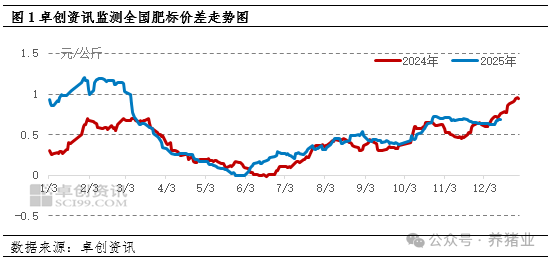 下半月生猪肥标差将维持窄幅波动、整体偏稳态势。供应端,集团生猪养殖企业出栏积极性增加,中小散户及二次育肥主体也有集中出栏,标猪与肥猪供应均较充裕,缺乏价差扩大基础。需求端虽有冬至腌腊、元旦备货支撑,但寒潮过后气温回升,腌腊热度降温,且消费习惯变迁,呈现“旺季不旺”特征,难以拉动价格分化。综上所述,卓创资讯预计下半月肥标价差将在现有区间内小幅震荡,难有大幅拉开。