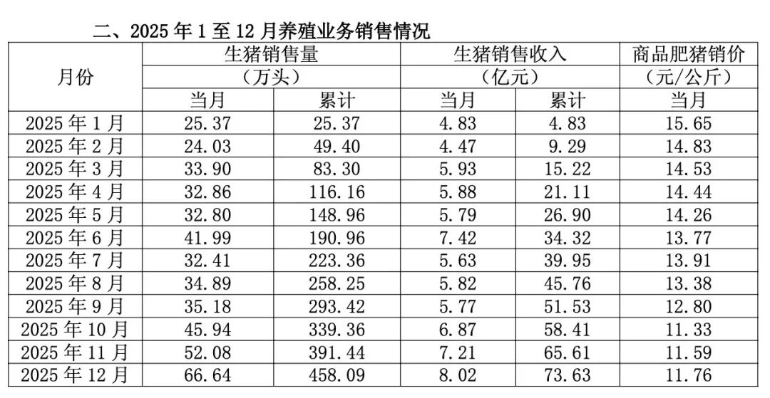 具体到巨星农牧,2025年,其生猪销售价格基本呈持续下行趋势,1月为15.65元/公斤,到12月仅为11.76元/公斤。