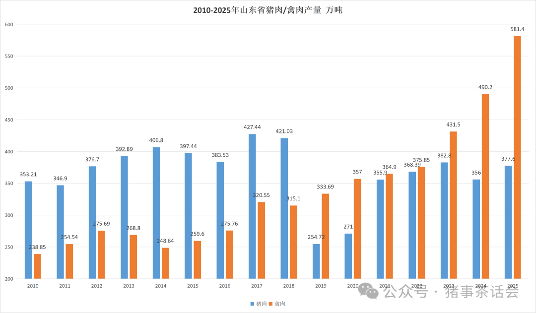 禽肉产量不仅远超猪肉,更占据全省肉类总产量的半壁江山以上,正式成为山东畜牧产业名副其实的第一大畜牧产业。