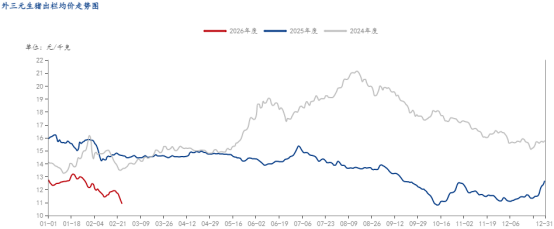 1、终端消费进入淡季,需求支撑全面弱化。春节后猪肉消费快速回落至全年低位,叠加长期消费趋势变化,需求端对猪价的支撑作用全面弱化。节后消费淡季效应凸显,家庭备货需求已基本消化,餐饮消费尚未完全复苏,白条肉走货缓慢,终端采购积极性低迷。2025年居民家庭人均猪肉消费量26.6公斤(同比下降5.4%)的连续下跌趋势延续,节后消费进一步收缩。消费结构与替代竞争持续挤压需求,健康饮食理念深化,家庭腌腊需求每年以3%-5%速度递减,高脂肪肉类消费占比持续下降。同时,替代品供应充足,2025年禽肉产量同比增长6.7%、牛肉增长2.8%,多元化选择持续分流猪肉需求,节后白条鸡价格较节前上涨1.3%,进一步挤压猪肉消费空间。