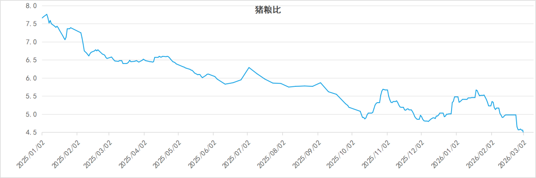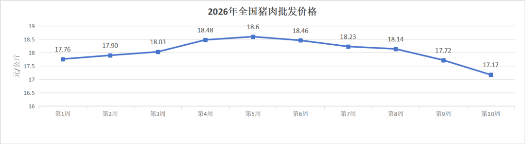 2025年下半年猪价从20.66元/公斤一路跌至17.44元,全年阴跌超15%;2026年前10周虽短暂反弹至18.6元,但迅速回落至17.17元。价格长期低位运行,反映产能过剩压力仍未缓解。