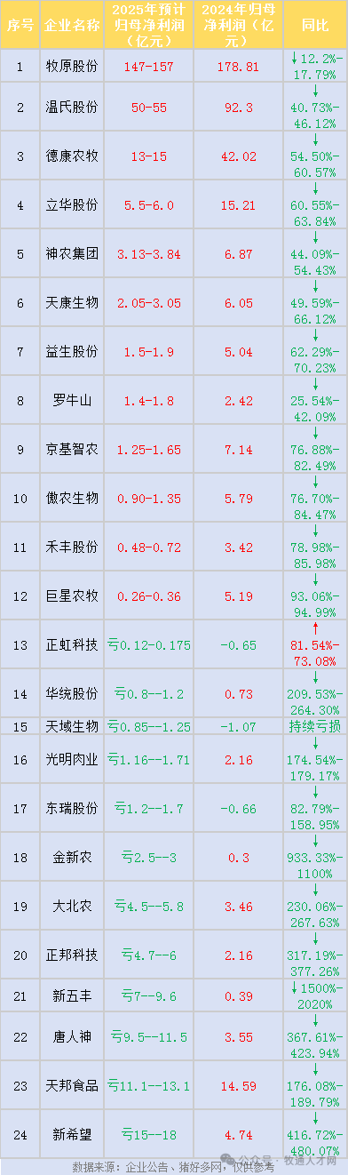 事实上,据行业媒体统计,在24家上市猪企发布的2025年业绩预告中,已有半数企业预告亏损。而即便尚未亏损的猪企,绝大多数也出现了净利润大幅下滑,整个行业处在深度承压阶段。