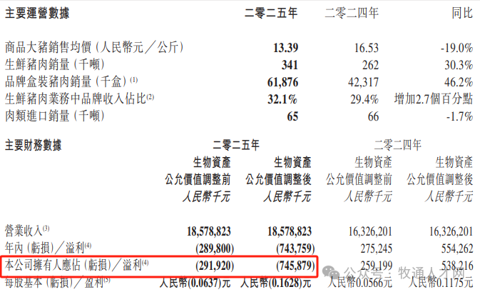 中粮家佳康同样实现营收增长,全年营收185.79亿元,同比增长13.8%。但受生猪价格低迷拖累,核心养殖业务亏损明显,最终公司由盈转亏,全年净亏损约2.92亿元,业绩承压较为突出。