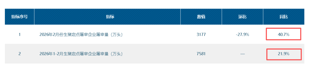 除开能繁母猪、存栏量这些重要指标外,还有一个不容忽视的数据,那就是全国定点屠宰量。据农业农村部发布数据,今年2月,全国生猪定点屠宰量为3177万头,环比下降27.9%主要是受到1月春节备货的影响。而从同比上来看,屠宰量直接大增40.7%!