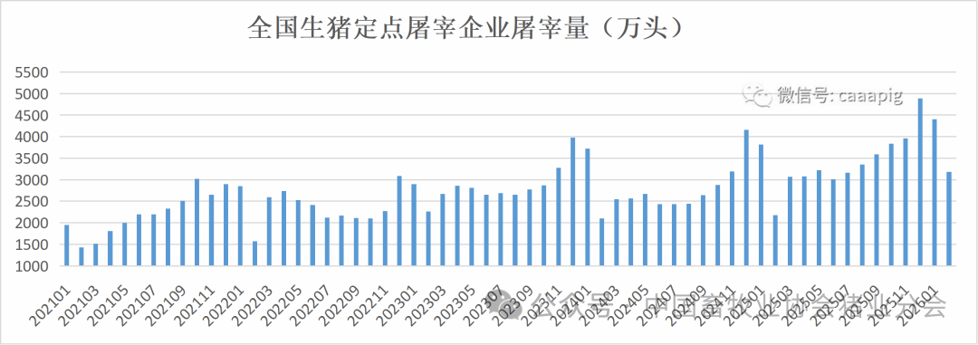 近期猪价一直在低价徘徊,最主要的原因还是市场上的猪太多了。今年前两个月的生猪定点屠宰量共计7581万头,2月份定点屠宰量单月3177万头,同比大增超40%,创下了历史同期的新高。