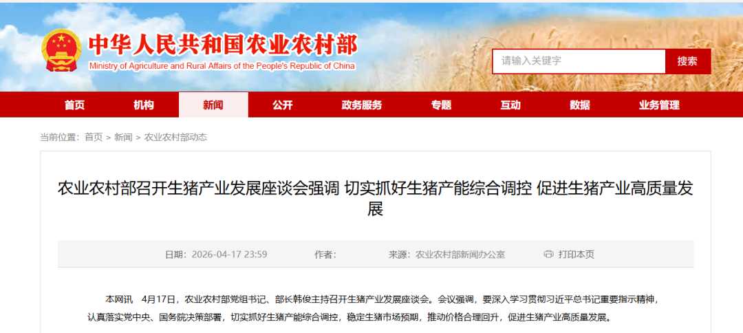 值得关注的是,4月17日农业农村部召开的生猪产业发展座谈会明确提出,要引导龙头企业通过订单养殖、托管代养等方式,带动中小养殖场户提升发展能力。这意味着,政策层面正在从单纯的“去产能”转向“去产能与稳主体并重”。