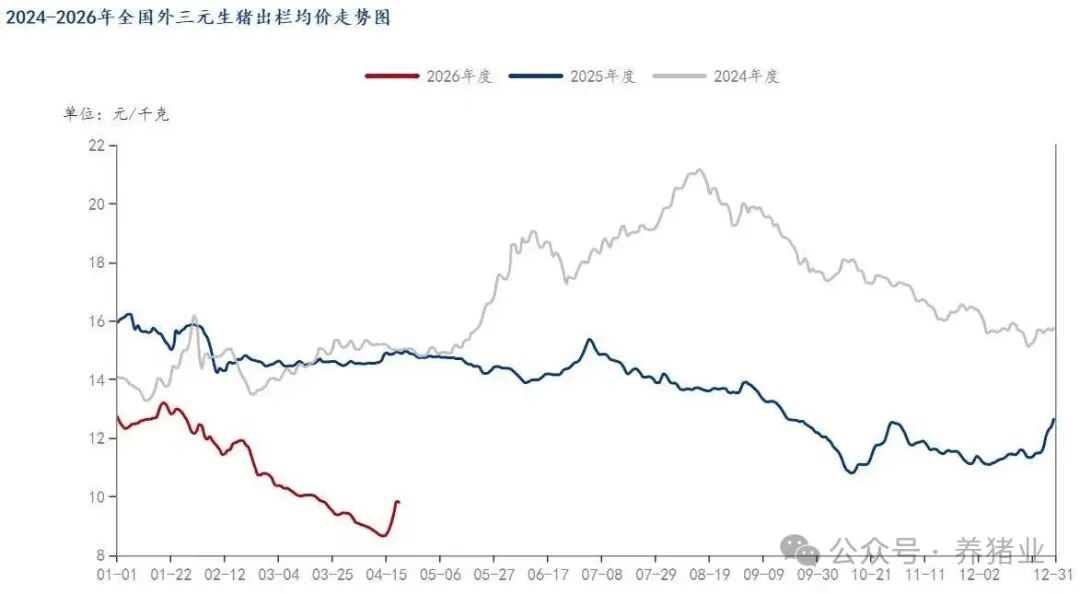 本轮反弹始于4月14日全国均价8.66元/公斤的年内低点,5天内快速攀升至9.84元/公斤,涨幅超13%,部分省份突破10元/公斤,区域单周涨幅超1.5元/公斤,一举终结此前两月阴跌态势,其中中部地区率先控量挺价、集团场阶段性缩量出栏是价格拉升的核心引擎,此次反弹也由多重因素共振驱动:供应端前期上旬集中出栏后,北方养殖企业率先缩量挺价,头部集团场同步阶段性减量,叠加二次育肥进场、养殖端惜售与市场抢猪情绪形成共振,助推价格快速上行;政策端农业农村部等部门持续强化产能调控,4月17日生猪产业座谈会释放稳价信号,进一步修复市场信心,提振行业情绪。快速拉涨后市场先进入情绪消化与震荡回调阶段,受短期涨幅过快、情绪偏亢奋影响,周初全国现货普跌,均价回落至9.64元/公斤,单日下跌0.2元,南方集团场成交偏弱、需求承接乏力,这既是市场技术性休整,也反映出基本面支撑仍存分歧,而随着市场情绪逐步企稳,叠加集团场持续控量、行业看涨预期升温,周下旬猪价再度反弹,形成“回调后再反弹”走势,月末价格支撑力进一步夯实。