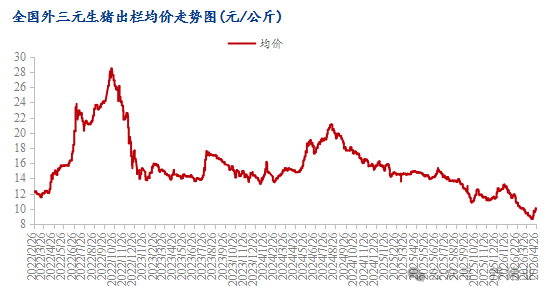 1.价格现状:截至4月26日,全国外三元生猪出栏均价为9.90元/公斤,较昨日下调0.18元/公斤;其中海南最低价8.80元/公斤,江苏最高价10.80元/公斤。